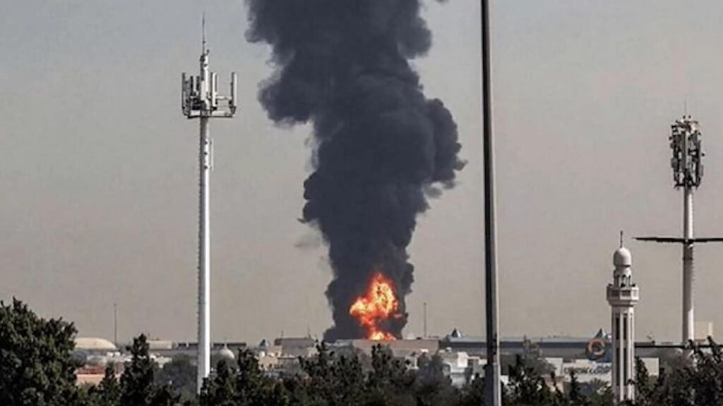 The Kuwait Mina al-Ahmadi refinery on fire this Friday after the attack by two Iranian drones.