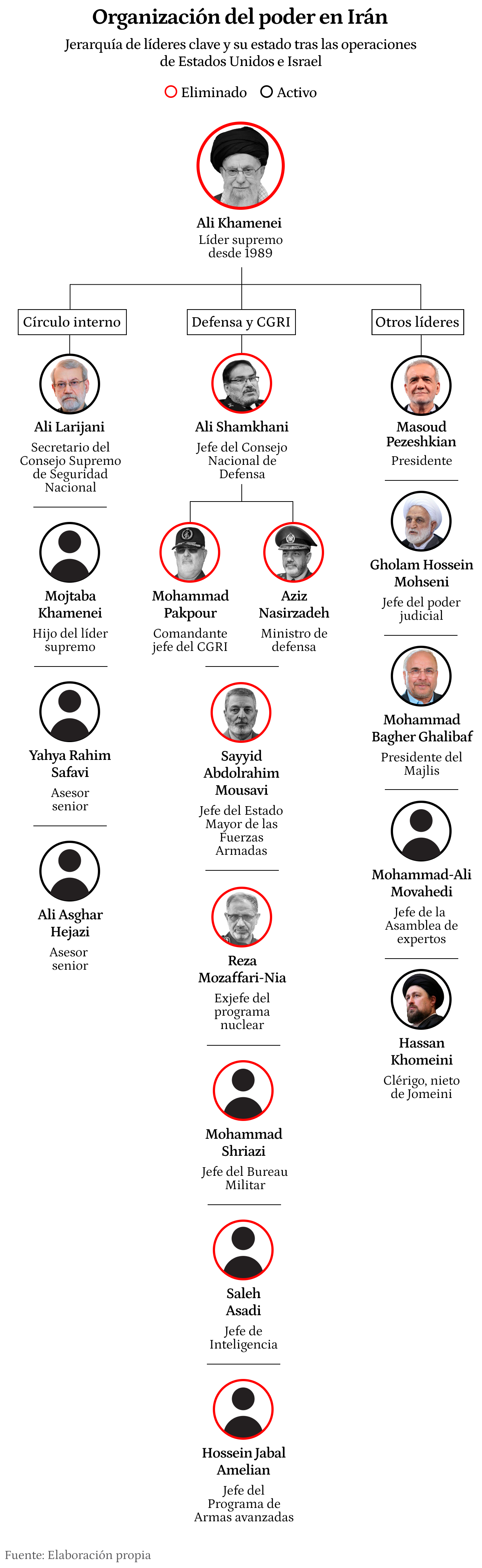 This group is made up of his chief of staff, his main military advisor and former commander in chief of the Guard, General Yahya Rahim Safaviand Brigadier General Mohammed Baqer Alibafformer commander of the Revolutionary Guard and current president of Parliament.